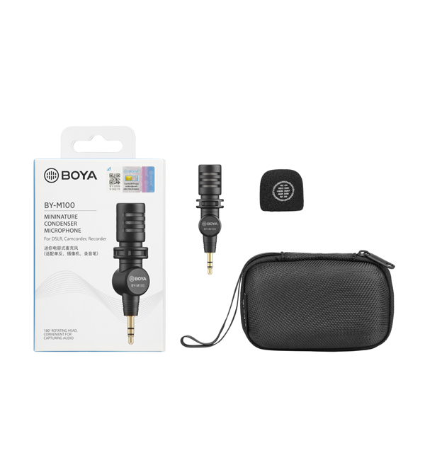 ⢠3.5mm TRS Mini microphone for DSLR, camcorder,recorder.